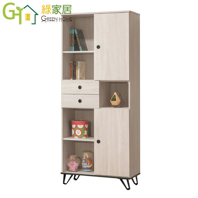 【綠家居】洛沃 時尚2.7尺右開二門二抽書櫃/收納櫃