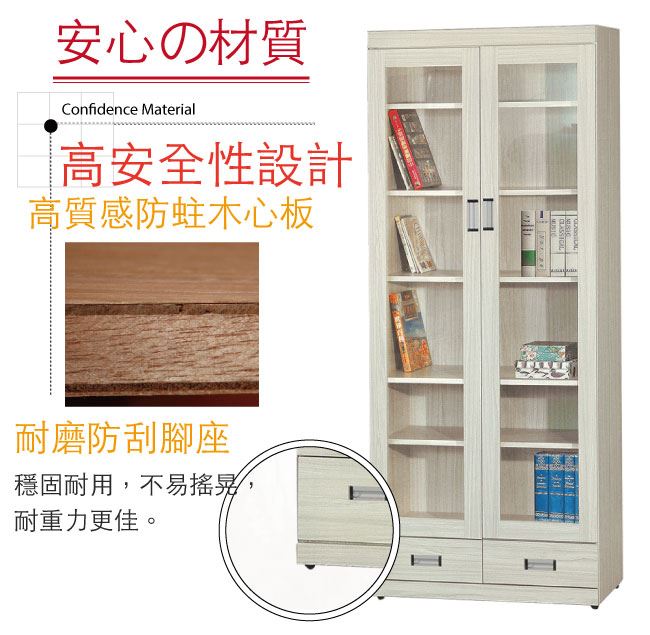 材質 | ◆產品名稱:【綠家居】波蘭 現代2.7尺二門二抽書櫃/收納櫃(二色可選) 尺寸:(寬)80x(深)38x(高)197/公分 ◆材質: 材質:防蛀木心板+五金滑軌結構+防夾手緩衝門片五金 塗漆:優利坦全包式耐磨噴漆處理 |