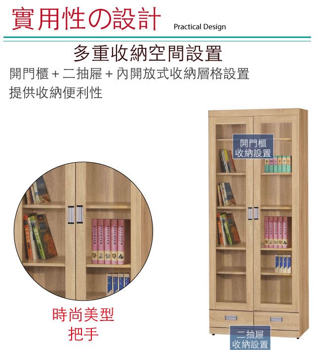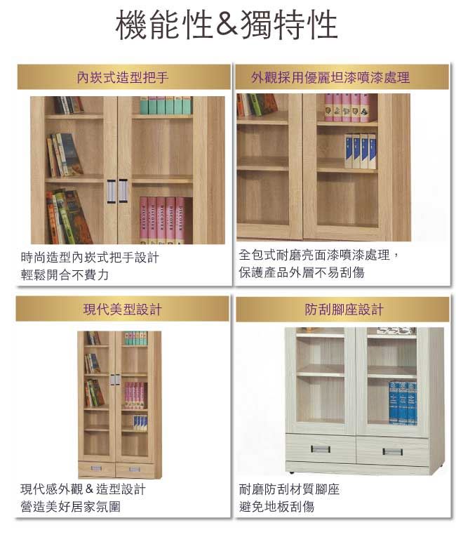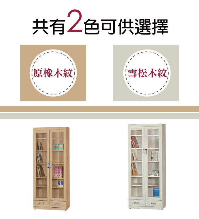 【綠家居】波蘭 現代2.7尺二門二抽書櫃/收納櫃(二色可選)
