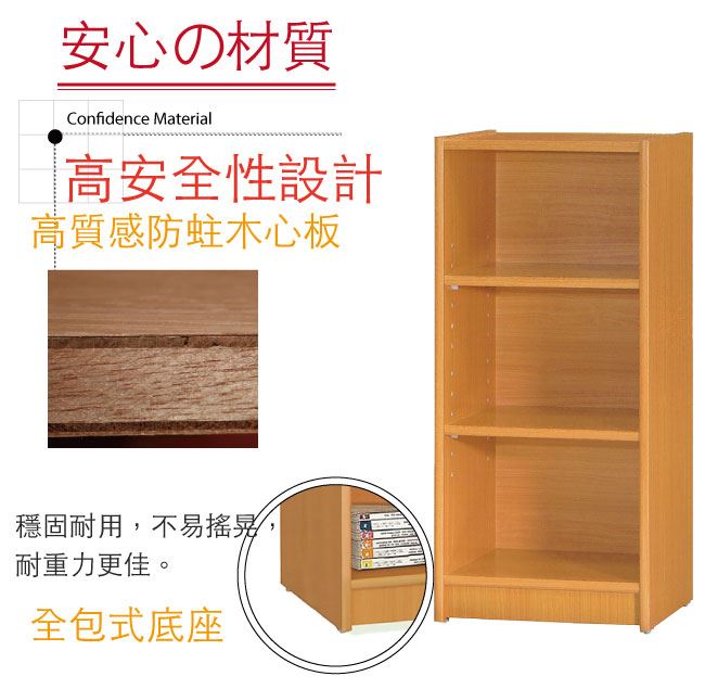 商品介紹 | 【綠家居】基斯坦 現代1.4尺三格書櫃/收納櫃(三色可選) 三色可選+現代簡約風格+安心材質製造,整體採用防蛀木心板安心材質製造,外層採用優利坦全包式耐磨噴漆處理搭配採用開放式三層格收納設計,全由專人配送到家,專業安心服務,替你省下更多時間! 【商品特色】 三色可選+現代簡約風格+安心材質製造,使用放心+搭配居家更便利 採用防蛀木心板安心材質製造 採用開放式三層格收納設計 此商品不需要DIY組立,此商品為組立後之成品 品質保證、專業設計、貼心服務 |