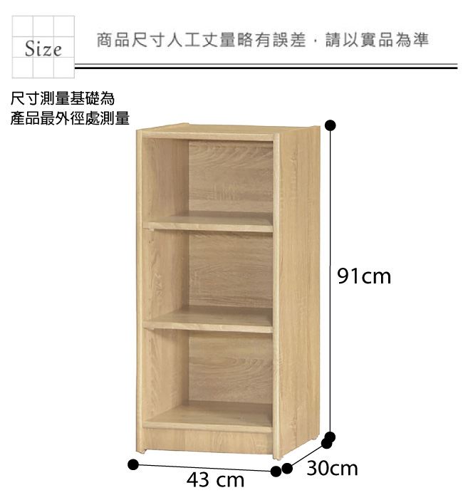 材質 | ◆產品名稱:【綠家居】基斯坦 現代1.4尺三格書櫃/收納櫃(三色可選) 收納櫃尺寸:(寬)43x(深)30x(高)91/公分 ◆材質: 材質:防蛀木心板 塗漆:優利坦全包式耐磨噴漆處理 |