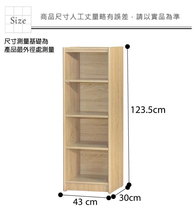 材質 | ◆產品名稱:【綠家居】基斯坦 現代1.4尺四格書櫃/收納櫃(三色可選) 收納櫃尺寸:(寬)43x(深)30x(高)123.5/公分 ◆材質: 材質:防蛀木心板 塗漆:優利坦全包式耐磨噴漆處理 |