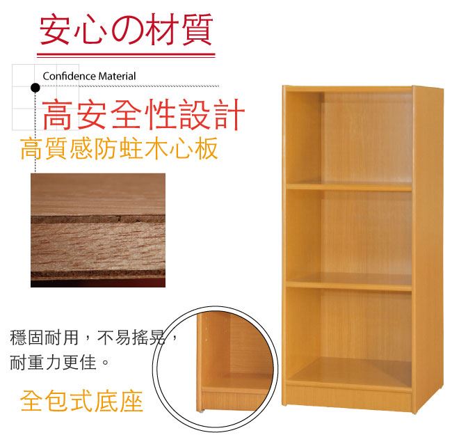 商品介紹 | 【綠家居】基斯坦 現代1.5尺三格書櫃/收納櫃(三色可選) 三色可選+現代簡約風格+安心材質製造,整體採用防蛀木心板安心材質製造,外層採用優利坦全包式耐磨噴漆處理搭配採用開放式三層格收納設計,全由專人配送到家,專業安心服務,替你省下更多時間! 【商品特色】 三色可選+現代簡約風格+安心材質製造,使用放心+搭配居家更便利 採用防蛀木心板安心材質製造 採用開放式三層格收納設計 此商品不需要DIY組立,此商品為組立後之成品 品質保證、專業設計、貼心服務 |