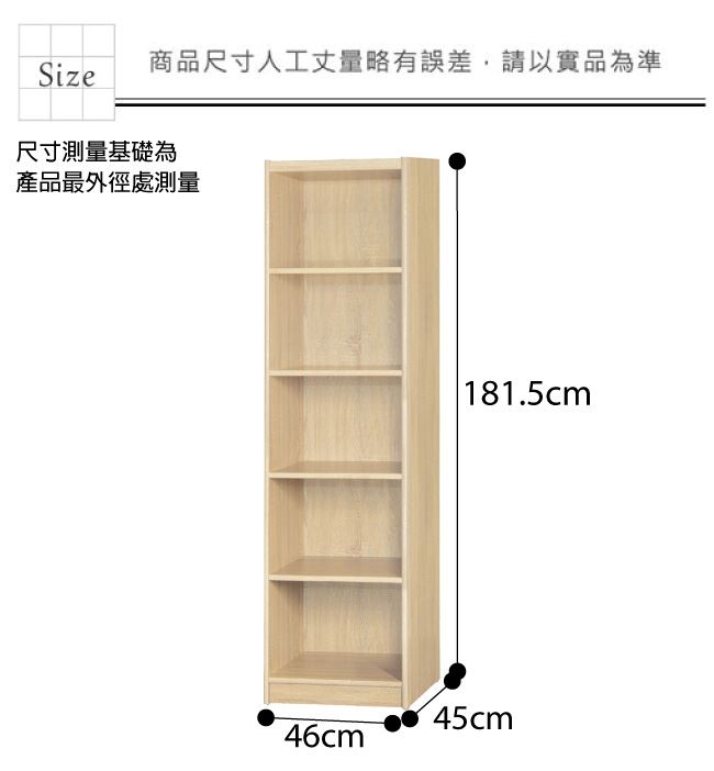 材質 | ◆產品名稱:【綠家居】基斯坦 現代1.5尺五格書櫃/收納櫃(三色可選) 收納櫃尺寸:(寬)46x(深)45x(高)181.5/公分 ◆材質: 材質:防蛀木心板 塗漆:優利坦全包式耐磨噴漆處理 |