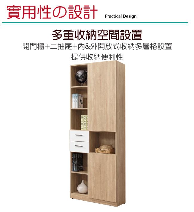 【綠家居】西巴 時尚2.5尺二門二抽書櫃/收納櫃