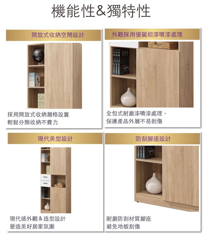 - 開門櫃+二抽屜+開放式層格