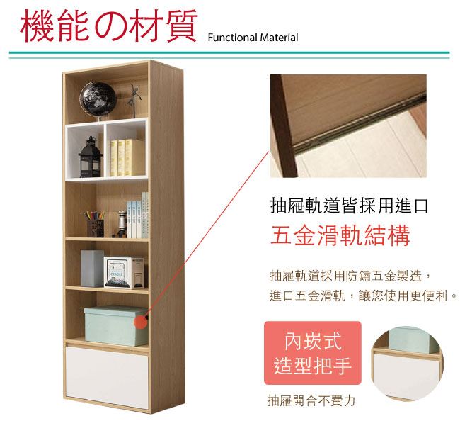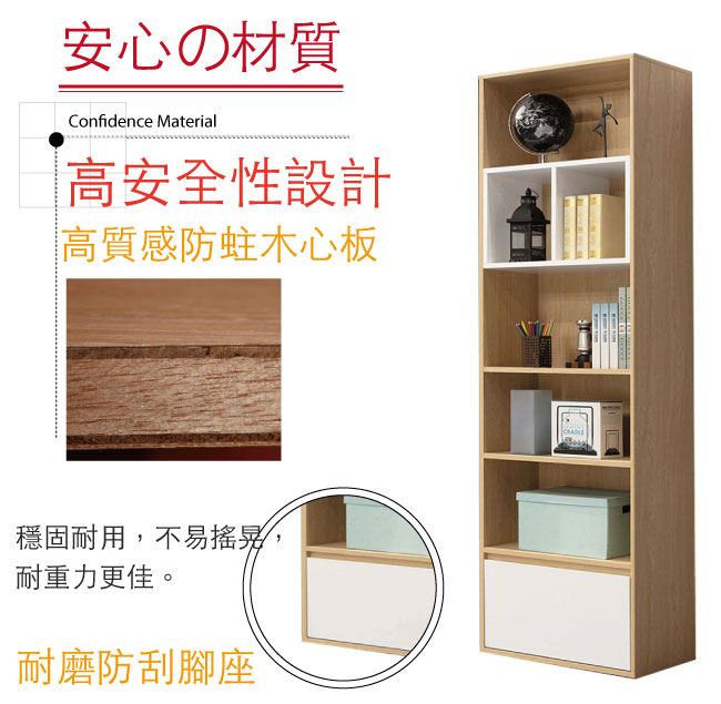 材質 | ◆產品名稱: 【綠家居】威廉 時尚2尺開放式單抽書櫃/收納櫃 尺寸:(寬)60x(深)30x(高)201.5/公分 ◆材質: 材質:防蛀木心板+防潮耐磨腳座+五金滑軌結構 噴漆:外層採用防潮耐磨&亮面噴漆處理