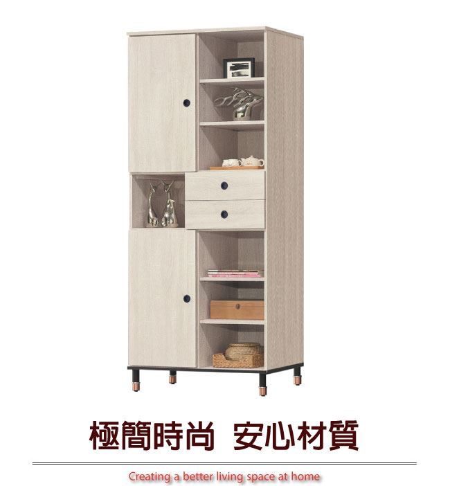 【綠家居】納卡西 淺橡2.7尺二門二抽書櫃