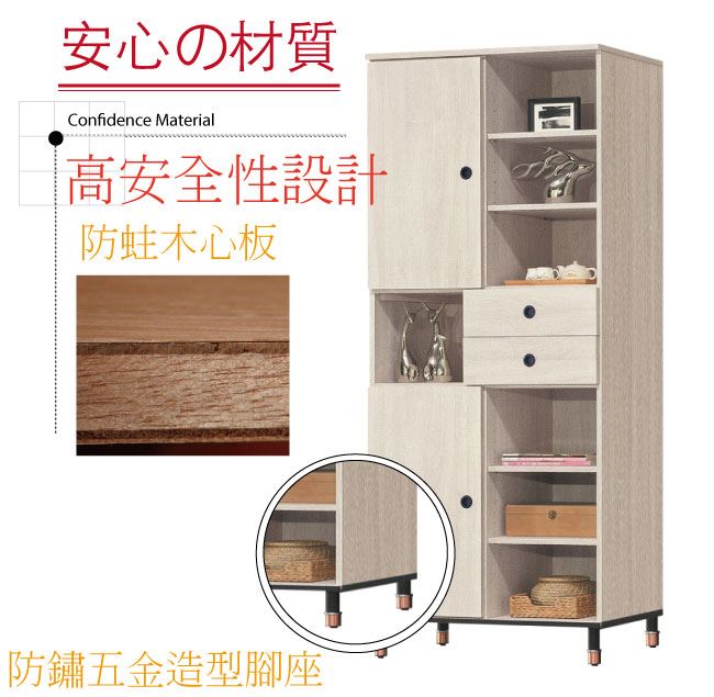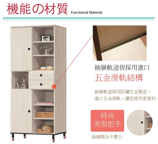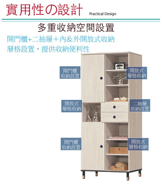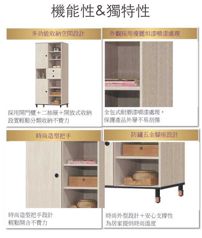- 開門櫃+二抽屜+開放式層格