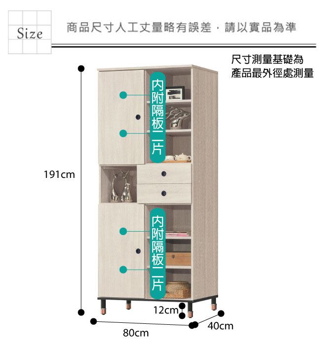 材質 | ◆產品名稱: 【綠家居】納卡西 淺橡2.7尺二門二抽書櫃 產品尺寸: 尺寸:(寬)80x(深)40x(高)191/公分 ◆材質: 材質:防蛀木心板+防鏽五金腳座 材質:五金滑軌結構 塗漆:優利坦全包式耐磨噴漆處理