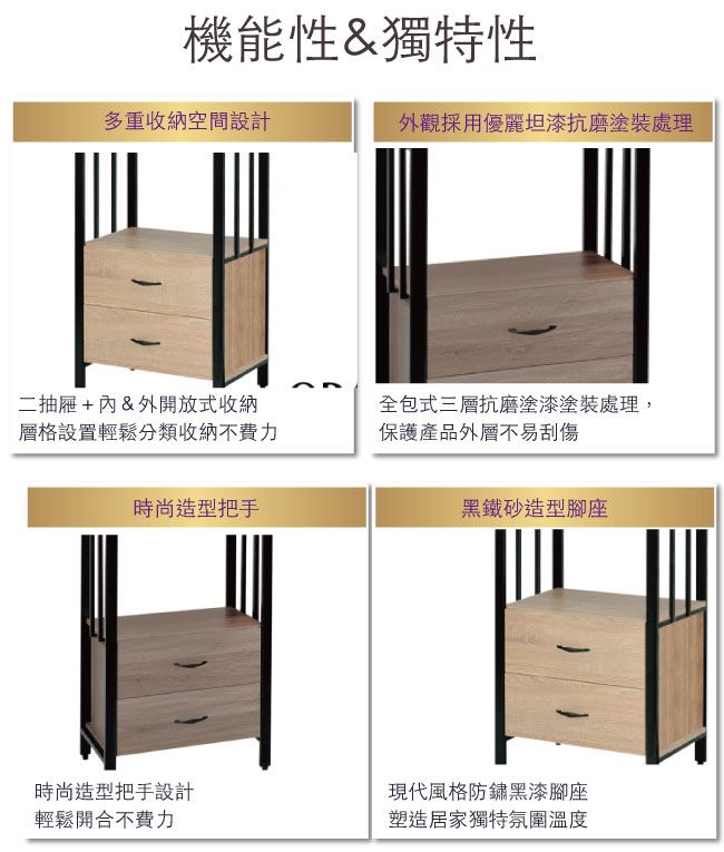 - 開放式收納+二抽屜
