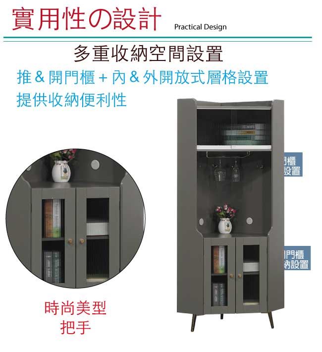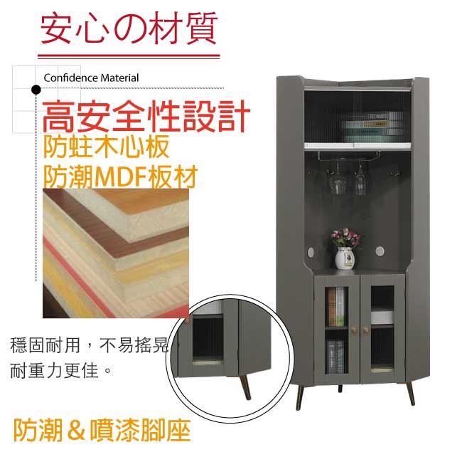 【綠家居】普安2.8尺雙門半開放書櫃/角邊櫃