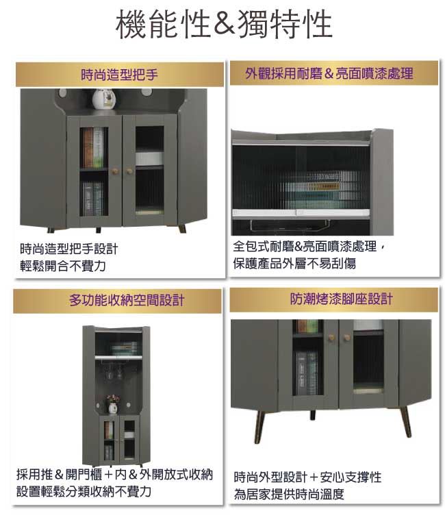 商 品 介 紹 | 【綠家居】普安2.8尺雙門半開放書櫃/角邊櫃 日式雙色系+現代簡約風格+安心材質製造,整體採用防潮MDF板材+防鏽黑漆腳座+強化玻璃門片+現代美型把手等安心材質製造,產品外層採用防潮亮面漆處理搭配採用開門櫃+內&外開放層格等空間設計,全由專人配送到家,專業安心服務,替你省下更多時間! 【商品特色】 日式雙色系+現代簡約風格+安心材質製造,使用放心+搭配居家更便利 採用防潮MDF板材+防鏽黑漆腳座+強化玻璃門片+現代美型把手等安心材質製造 產品外層採用防潮亮面噴漆處理 搭配採用開門櫃+內&外開放層格等空間設計 此商品不需要DIY組立,此商品為組立後之成品 全由專人配送到家,專業安心服務,替您省下更多時間 |