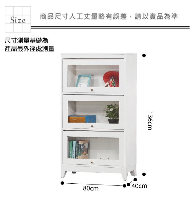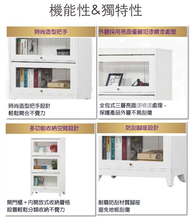 - ◆產品名稱:【綠家居】安特列日式白2.7尺三掀門中書櫃