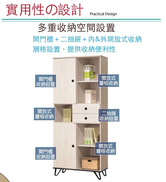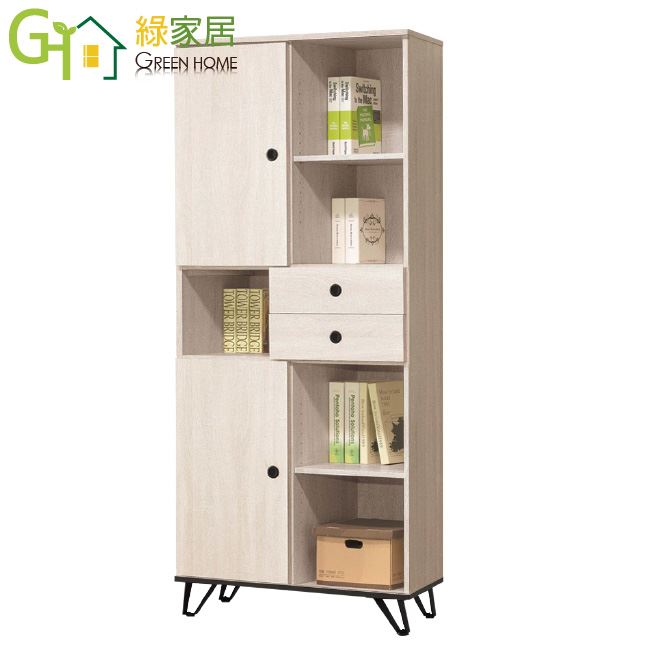 【綠家居】奧莉左開門2.7尺二門二抽書櫃/收納櫃