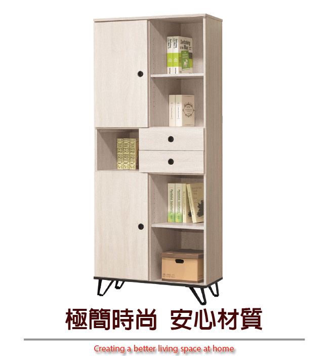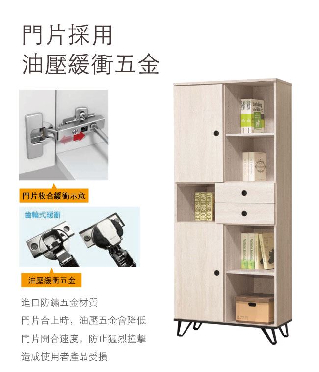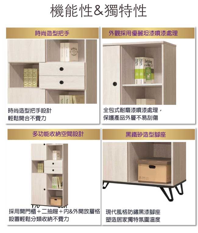 - ◆產品名稱:【綠家居】奧莉左開門2.7尺二門二抽書櫃/收納櫃