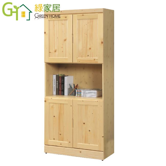- ◆產品名稱:【綠家居】萊伊實木2.7尺四門中空書櫃/收納櫃
