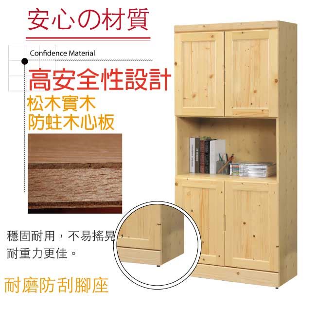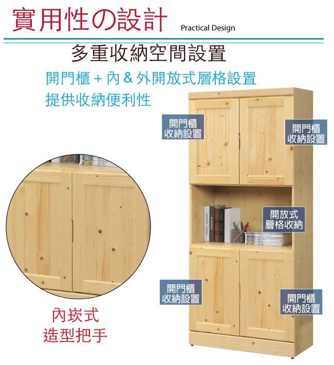 【綠家居】萊伊實木2.7尺四門中空書櫃/收納櫃