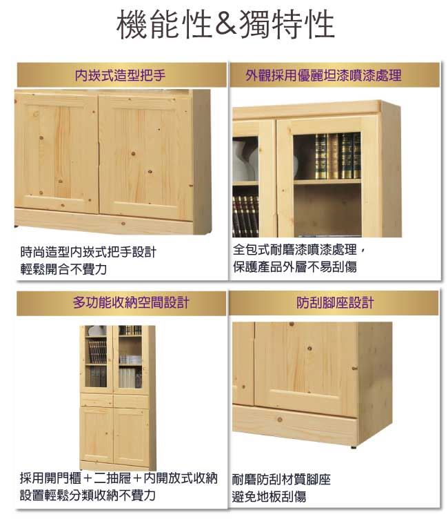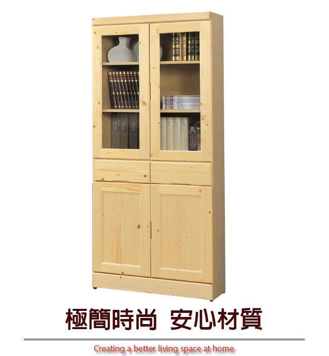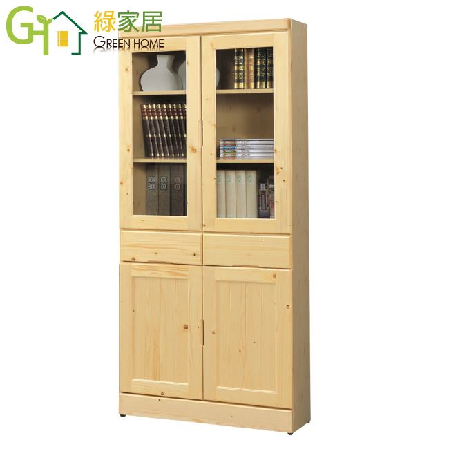 - ◆產品名稱:【綠家居】萊伊實木2.7尺四門二抽書櫃/收納櫃