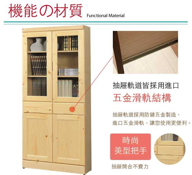 【綠家居】萊伊實木2.7尺四門二抽書櫃/收納櫃