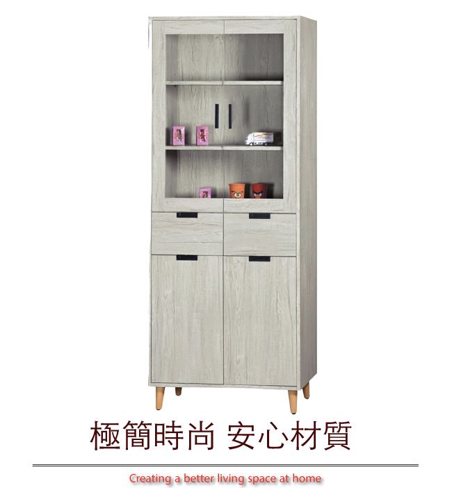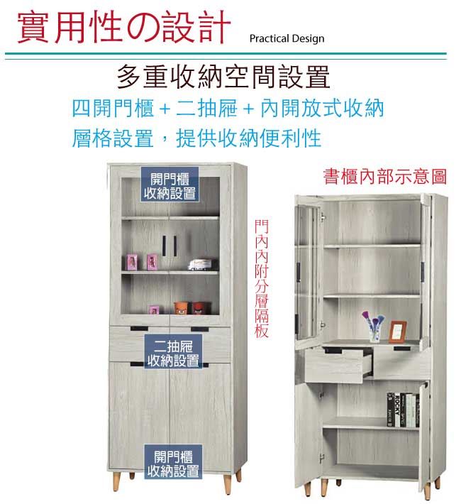 【綠家居】夏艾亞淺橡2.7尺四門中抽書櫃