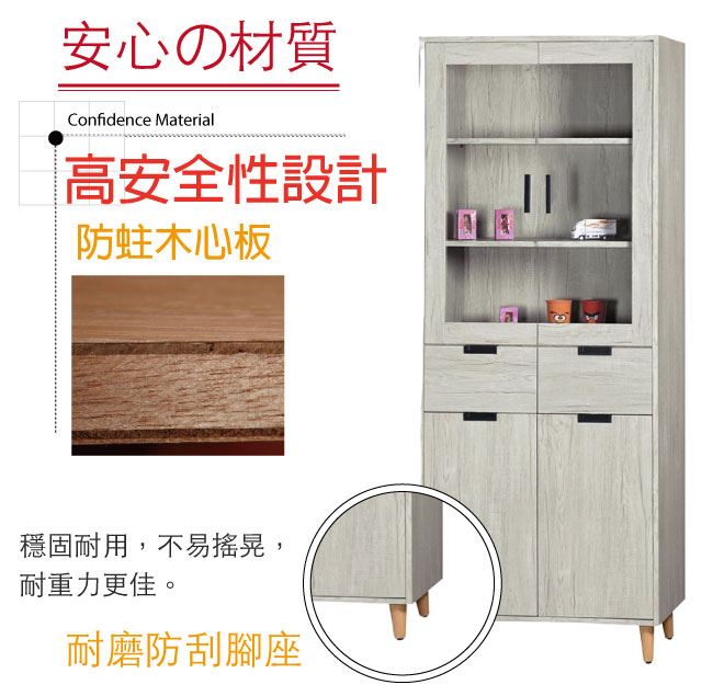 材質 | ◆產品名稱:【綠家居】夏艾亞淺橡2.7尺四門中抽書櫃 尺寸:(寬)80x(深)40(高)194/公分 ◆材質: 材質:防蛀木心板+防刮耐磨腳座+五金滑軌結構 噴漆:防潮耐磨噴漆處理