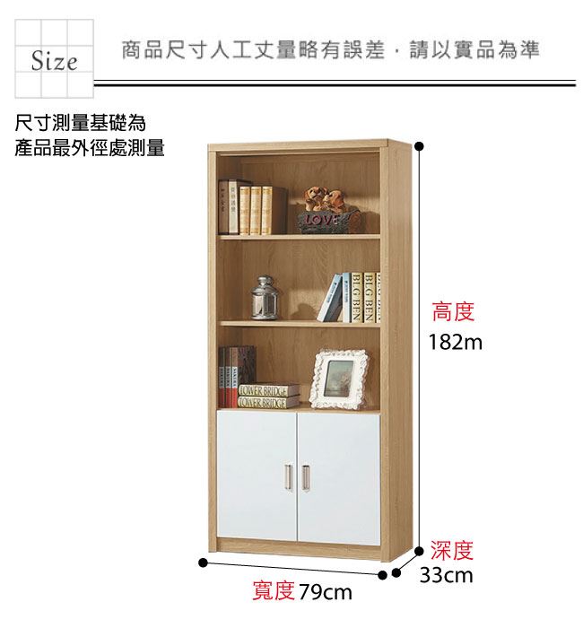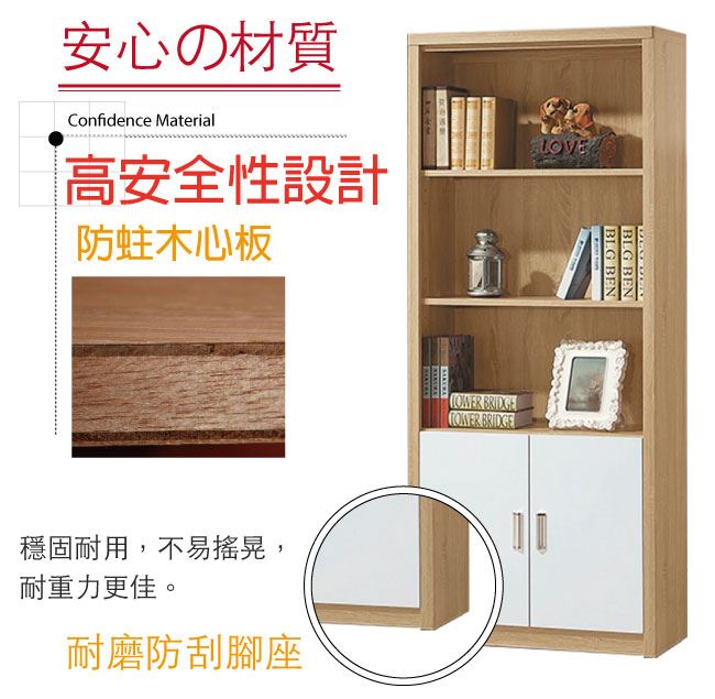 材質 | ◆產品名稱:【綠家居】夏多利2.6尺開放三格雙開門書櫃/收納櫃(二色可選) 尺寸:(寬)79x(深)33(高)182/公分 ◆材質: 材質:防蛀木心板+防刮耐磨腳座 噴漆:防潮耐磨&亮面噴漆處理