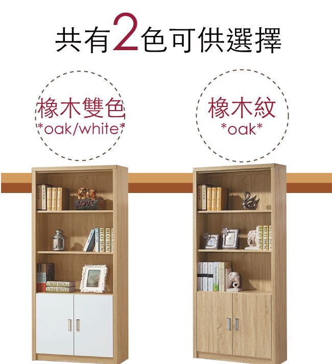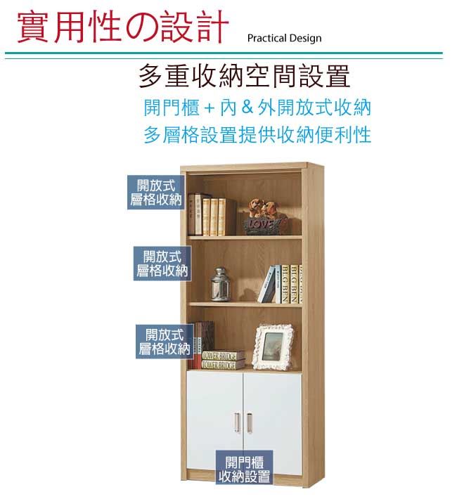 【綠家居】夏多利2.6尺開放三格雙開門書櫃/收納櫃(二色可選)