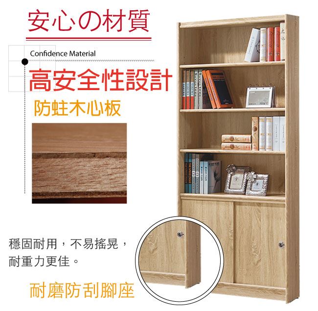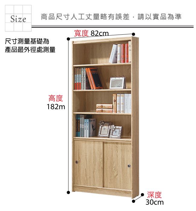 材質 | ◆產品名稱:【綠家居】夏多利2.7尺開放式四格下雙推門書櫃 尺寸:(寬)82x(深)30(高)182/公分 ◆材質: 材質:防蛀木心板+防刮耐磨腳座 噴漆:防潮耐磨噴漆處理