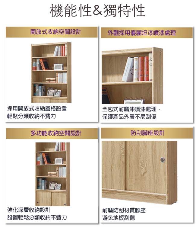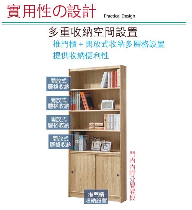 【綠家居】夏多利2.7尺開放式四格下雙推門書櫃
