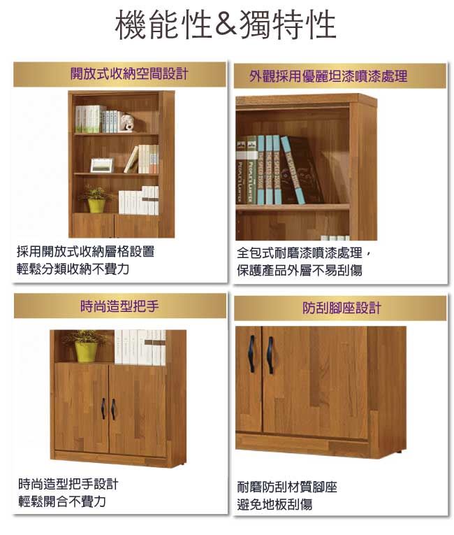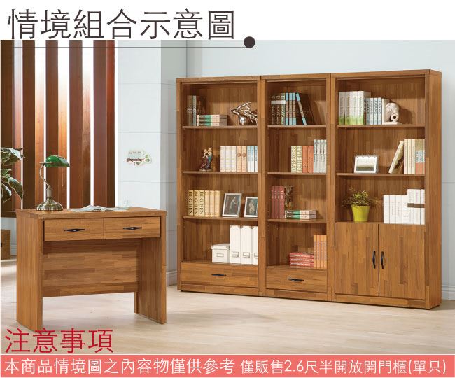 【綠家居】瑪米2.6尺開放三格雙開門書櫃/收納櫃