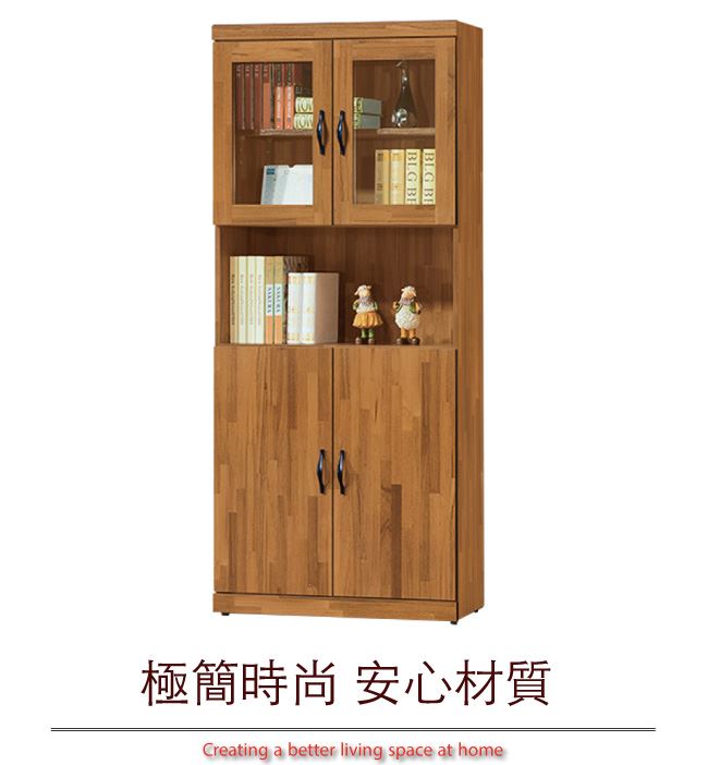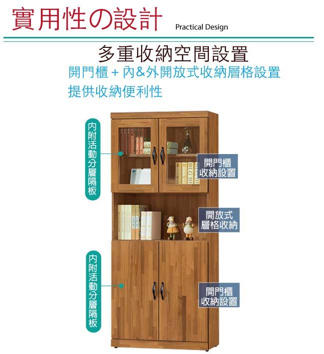 【綠家居】瑪米2.6尺四門中開放書櫃/收納櫃