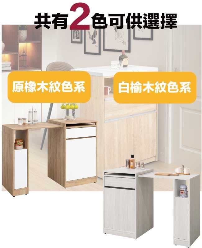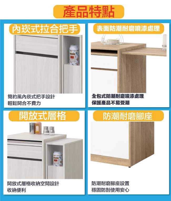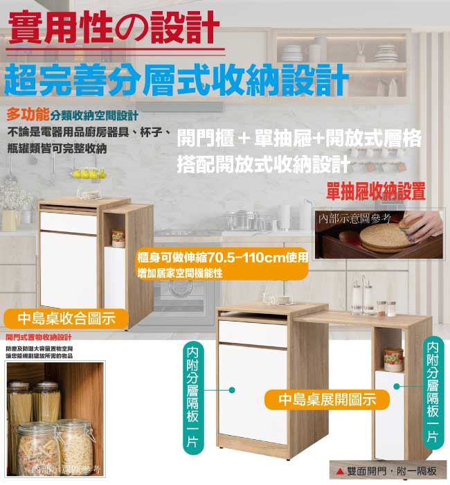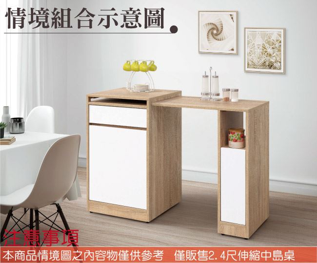 【綠家居】溫斯2.4尺可伸縮中島桌櫃(二色可選)