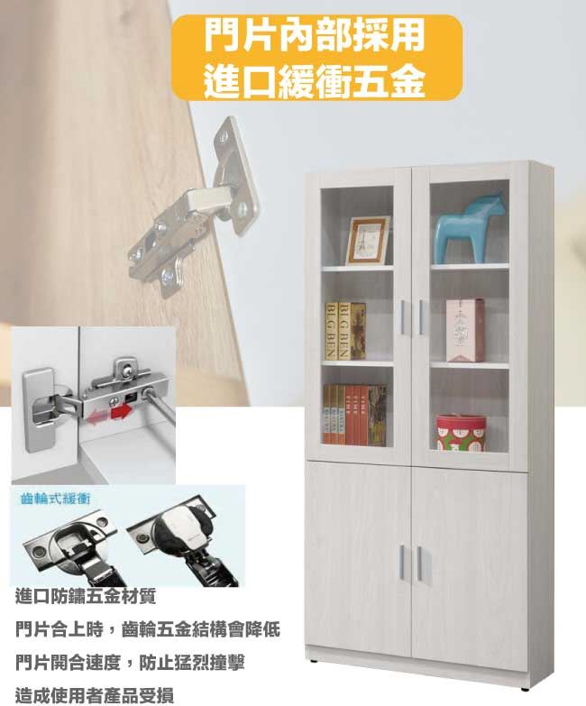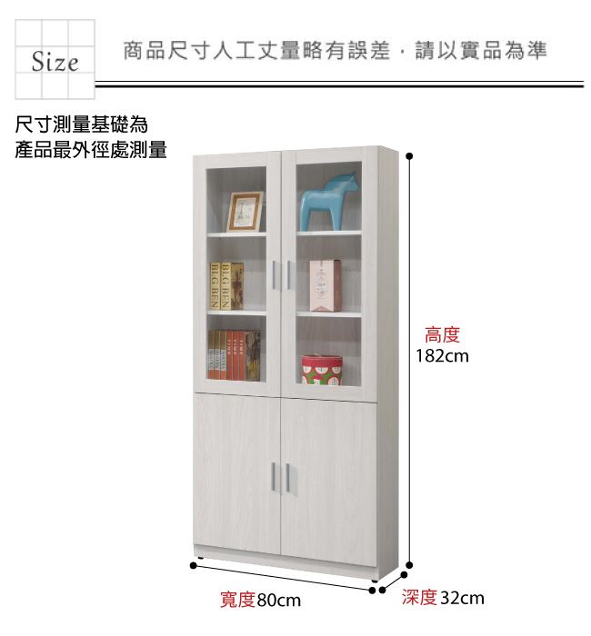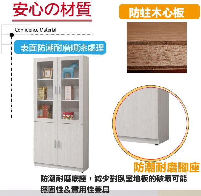 材質 | ◆產品名稱:【綠家居】黛可2.7尺四門書櫃 尺寸:(寬)80(深)32(高)182公分 ◆材質: 材質:防蛀木心板+防潮耐磨腳座+防夾手緩衝門片五金 噴漆:防潮耐磨噴漆處理
