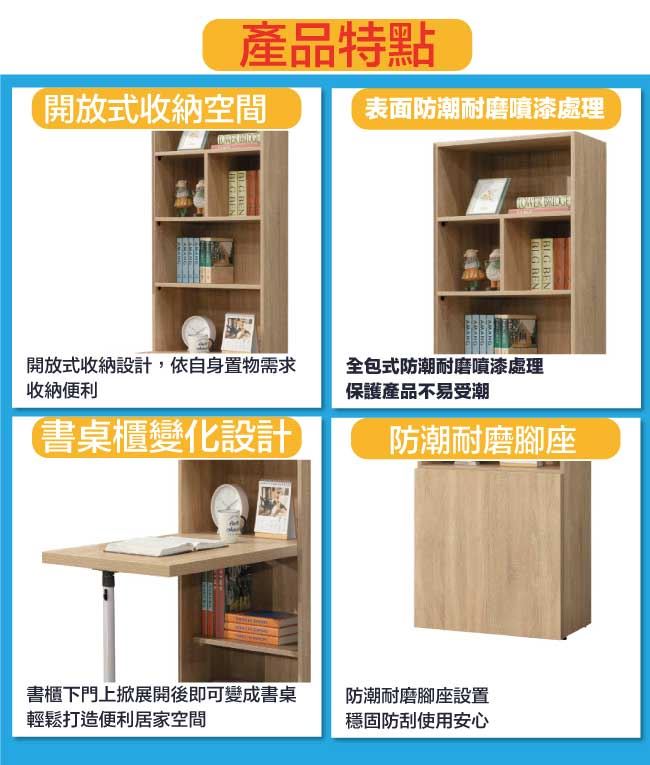 【綠家居】溫斯2尺可收折開放書桌櫃組合