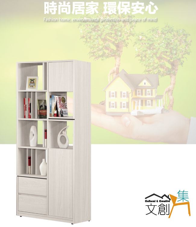 【綠家居】麥格妮2.7尺二門半開放書櫃/收納櫃