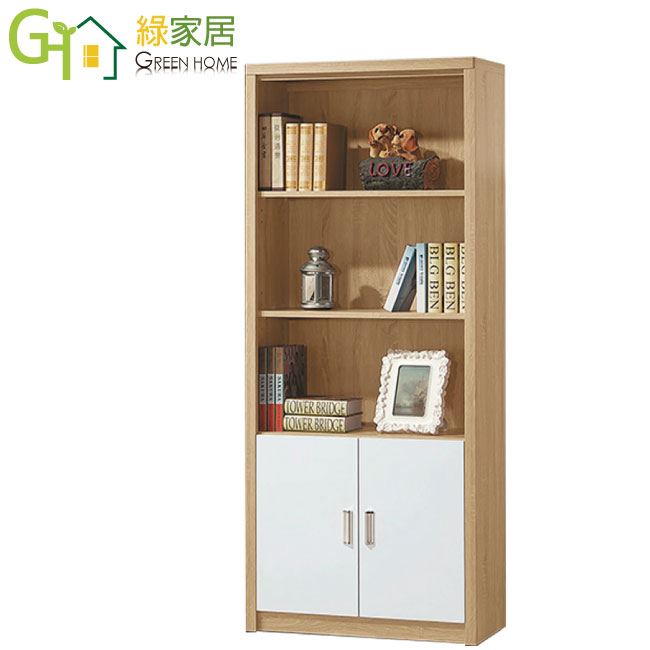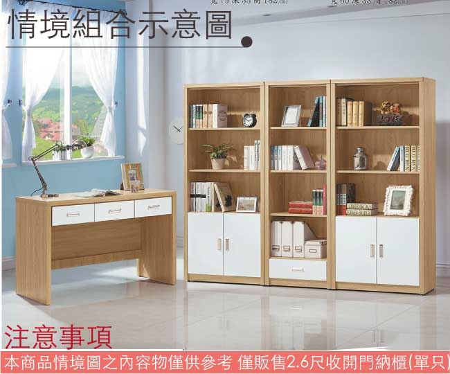 【綠家居】夏多利2.6尺開放三格雙開門書櫃/收納櫃(二色可選)