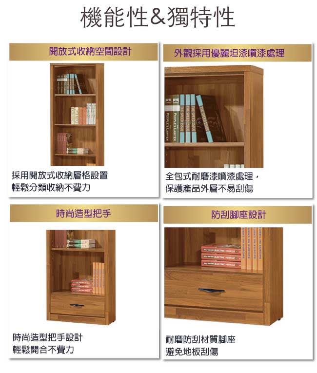 【綠家居】瑪米2.6尺開放四格單抽書櫃/收納櫃