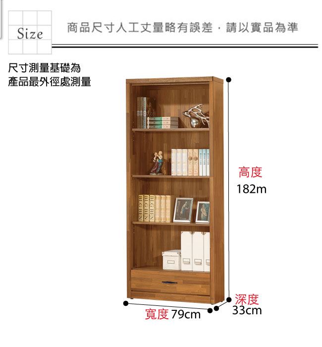 材質 | ◆產品名稱:【綠家居】瑪米2.6尺開放四格單抽書櫃/收納櫃 尺寸:(寬)79x(深)33(高)182/公分 ◆材質: 材質:防蛀木心板+防刮耐磨腳座+五金滑軌結構 噴漆:防潮耐磨噴漆處理