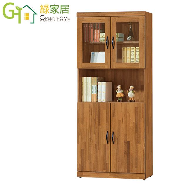 【綠家居】瑪米2.6尺四門中開放書櫃/收納櫃