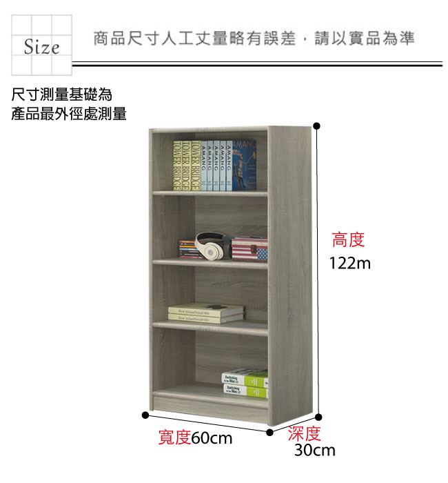 材質 | ◆產品名稱:【綠家居】迷夏利2尺開放式四格書櫃 尺寸:(寬)60.5x(深)30(高)122/公分 ◆材質: 材質:防蛀木心板+防刮耐磨腳座 噴漆:防潮耐磨噴漆處理