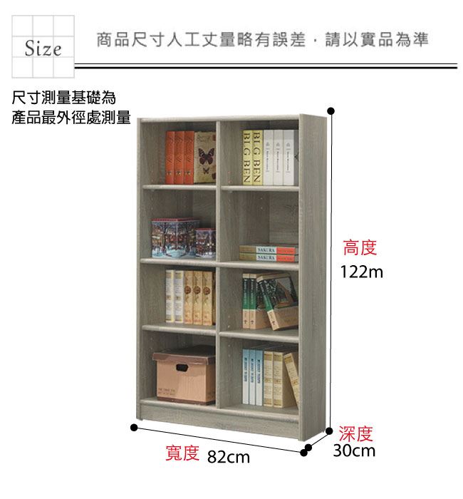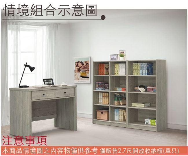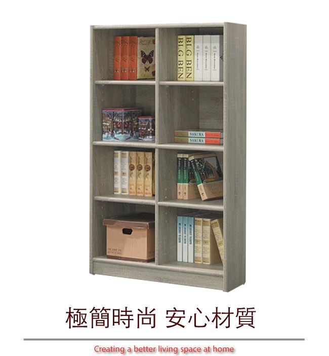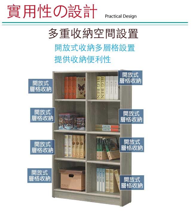【綠家居】迷夏利2.7尺開放式八格中高書櫃
