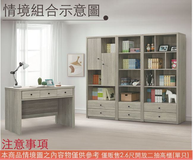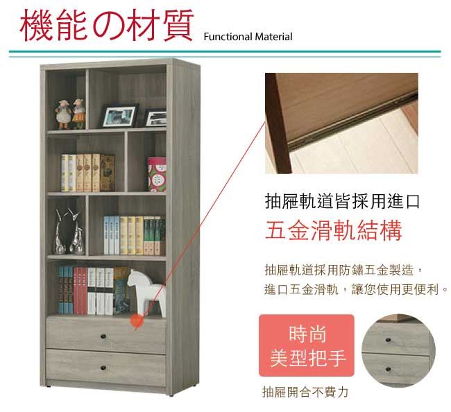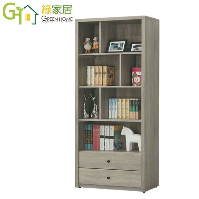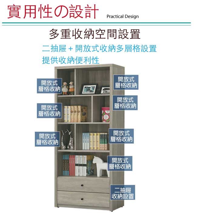 【綠家居】雅瑪米2.6尺開放七格二抽書櫃/收納櫃