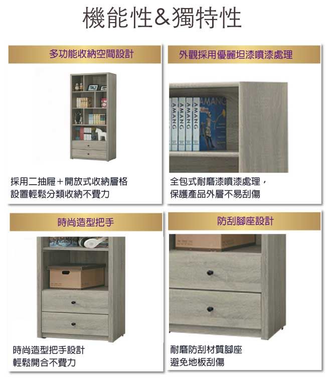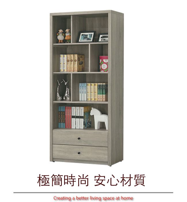 商品 介紹 | 【綠家居】雅瑪米2.6尺開放七格二抽書櫃/收納櫃 淺灰木紋色系+現代簡約風格+安心材質製造,整體採用防蛀木心板+防刮耐磨腳座+五金滑軌結構等安心材質製造,產品外層採用防潮耐磨噴漆處理搭配採用二抽屜+開放式七層格等收納空間設計,全由專人配送到家,專業安心服務,替你省下更多時間! 【商品特色】 淺灰木紋色系+現代簡約風格+安心材質製造,使用放心+搭配居家更便利 採用防蛀木心板+防刮耐磨腳座+五金滑軌結構等安心材質製造 產品外層採用防潮耐磨噴漆處理 搭配採用二抽屜+開放式七層格等收納空間設計 此商品不需要DIY組立,此商品為組立後之成品 品質保證、專業設計、貼心服務 全由專人配送到家,專業安心服務,替您省下更多時間 |