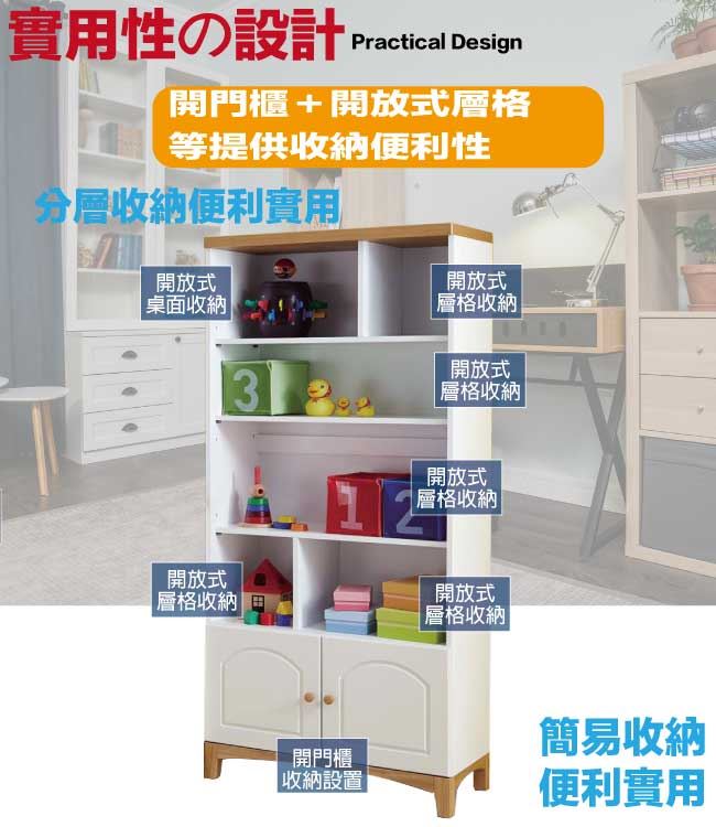 【綠家居】路可雙色2.7尺二門開放式書櫃