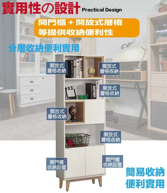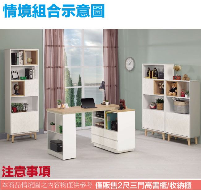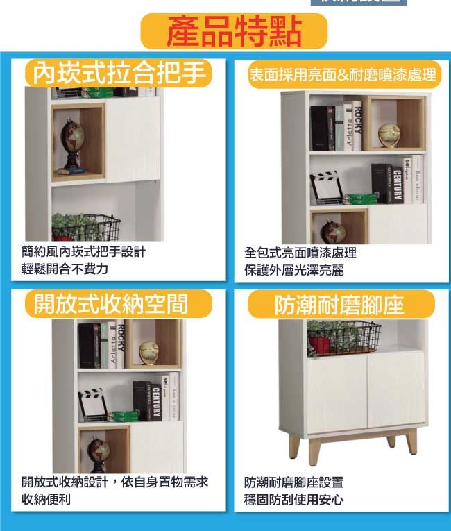 【綠家居】奈吉亞雙色2尺三門半開放式書櫃/收納櫃