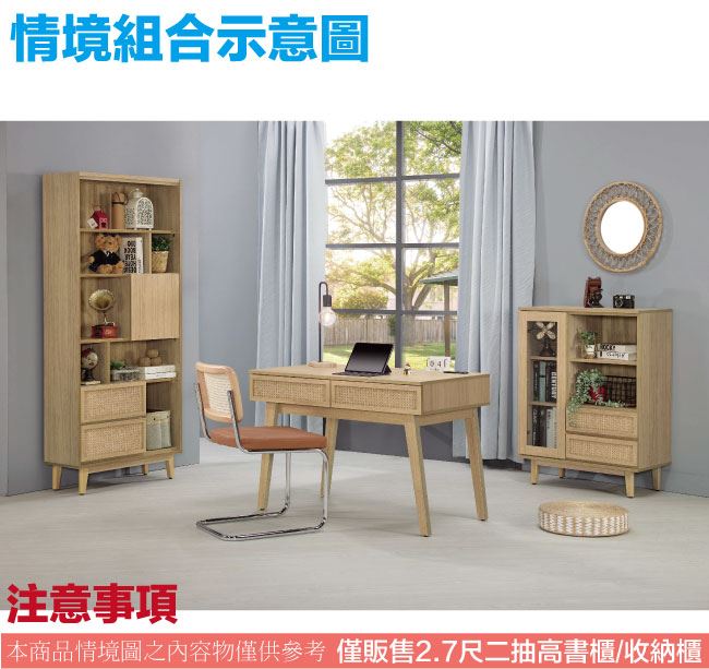 【綠家居】神奈川編織紋2.7尺單門二抽書櫃/收納櫃