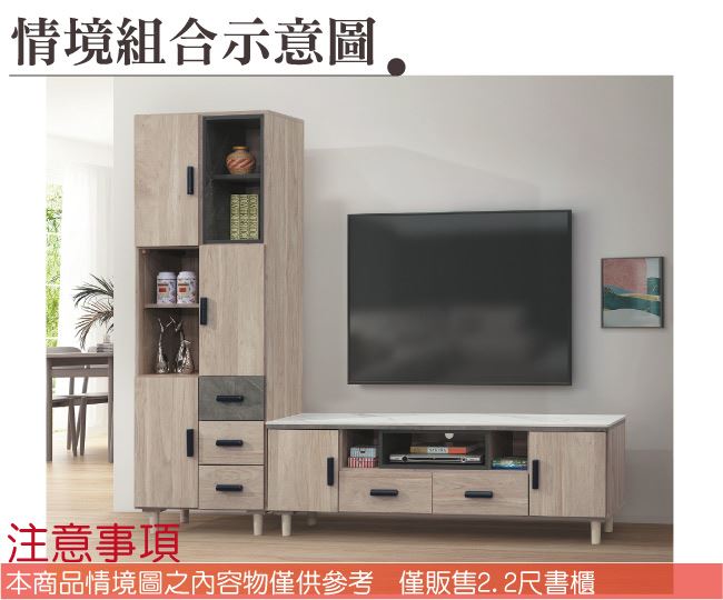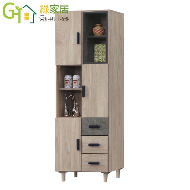【綠家居】路卡夫2.2尺三門三抽書櫃