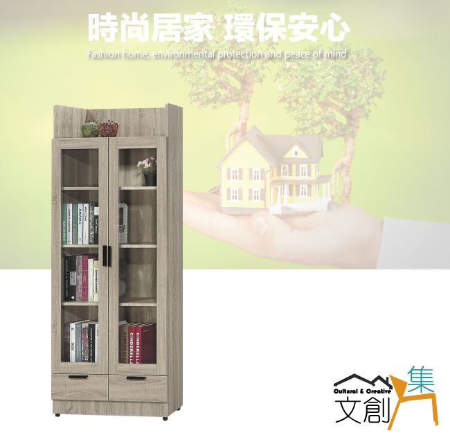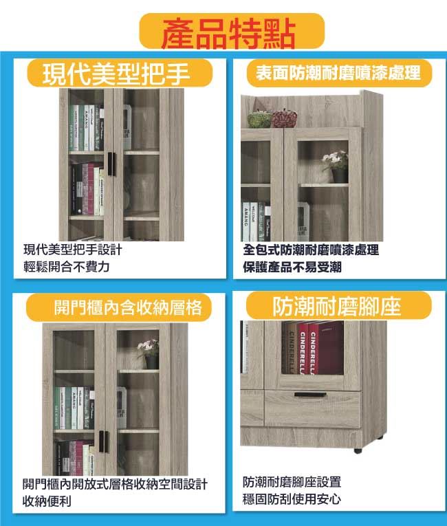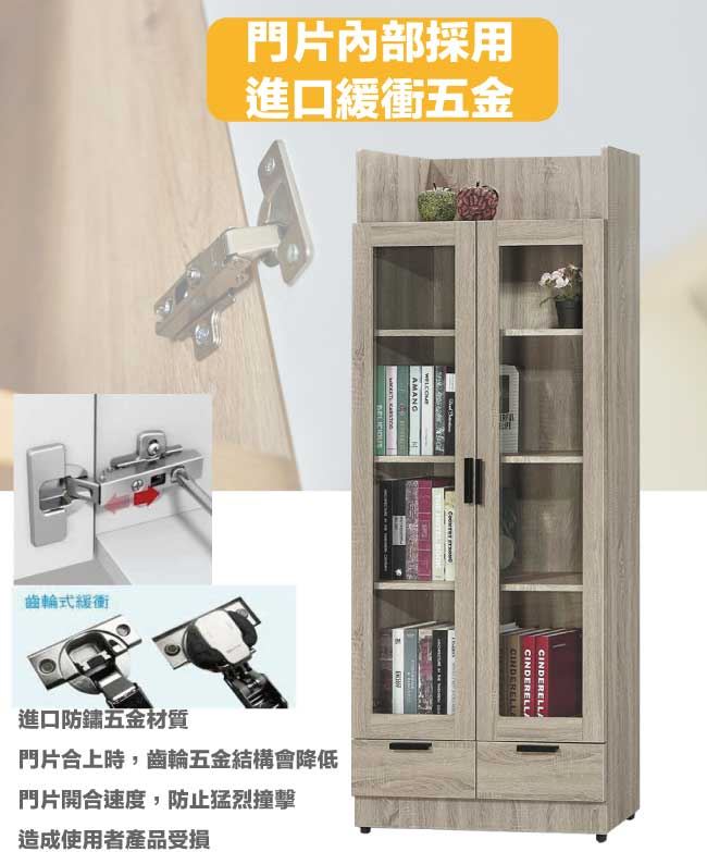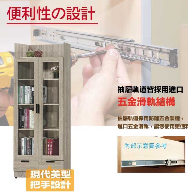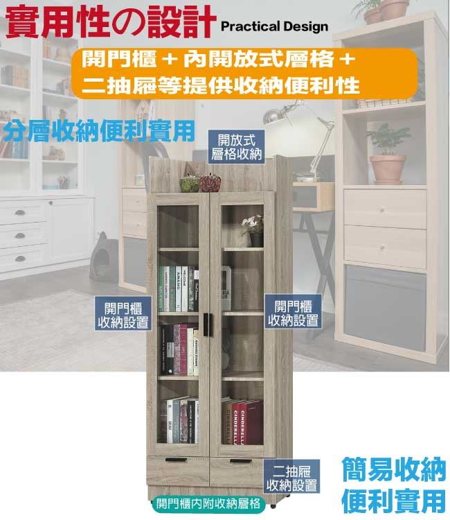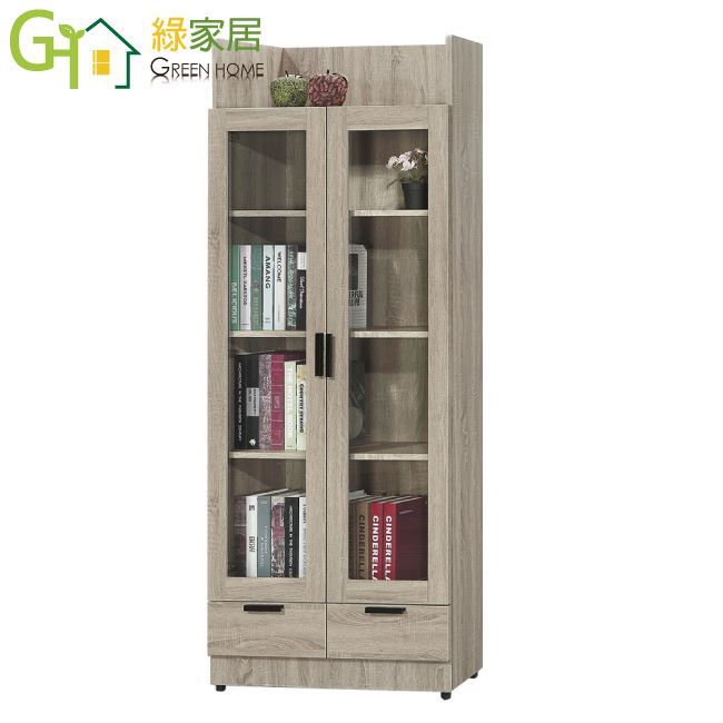 【綠家居】泰雷2.6尺二門二抽高書櫃