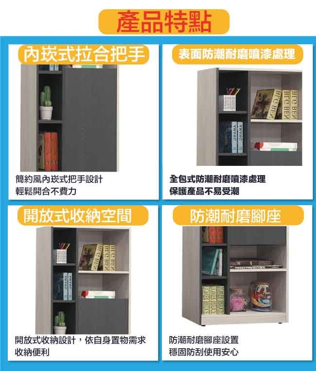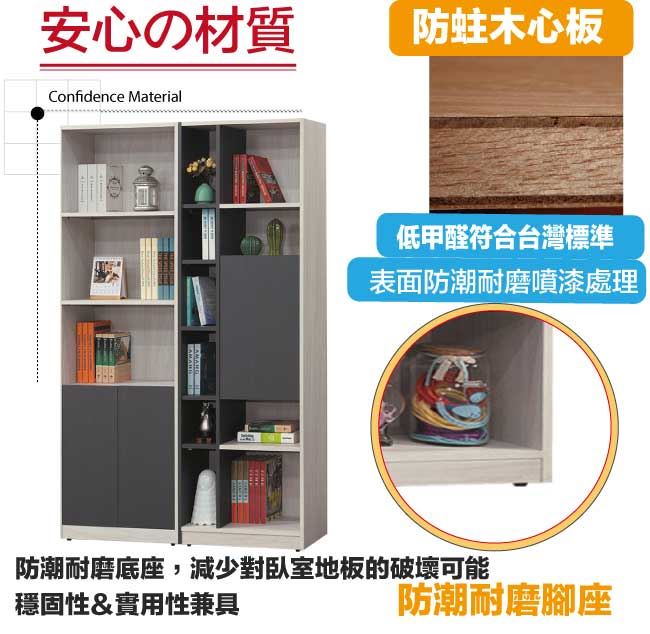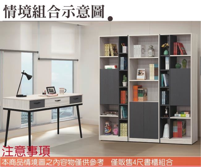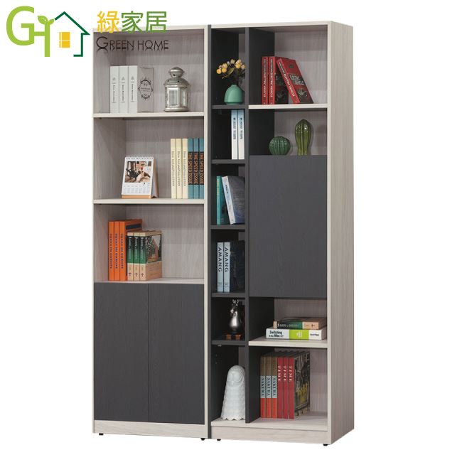 【綠家居】路多雙色4尺三門開放式高書櫃組合(左&右二向開門方向可選)